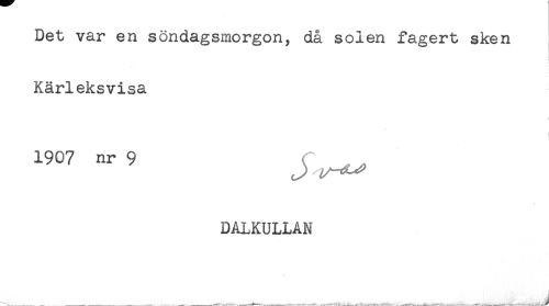 //// Det var en söndagsmorgon, då solen fagert sken //// Kärleksvisa //// 1907 nr 9 ^ „ //// DALKULLAN //// ^^ _ ___ ^ __ _ ^..... ////