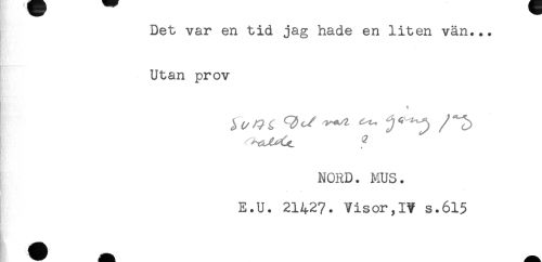 //// Det var en tid jag hade en liten vän... //// Utan prov //// ! * //// NORD. MUS. //// E.U. 21427. Visor,IV s.615 ////