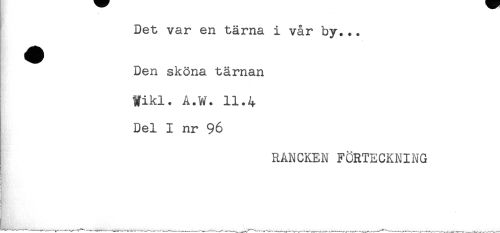 //// Det var en tärna i vår by... //// Den sköna tärnan //// Wikl. A.W. 11.4 //// Del I nr 96 //// RANCKEN FÖRTECKNING ////