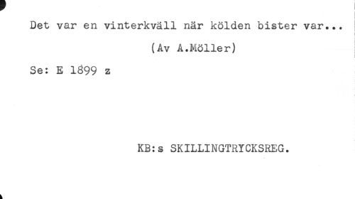 //// Det var en vinterkväll när kölden bister var... //// i //// i //// (Av A.Möller) //// t //// Se: E 1399 z //// ! //// KB:s SKILLINGTRYCKSREG. ////