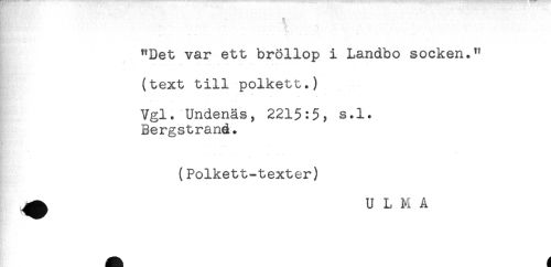 //// K <§; //// "Det var ett bröllop i Landbo socken." //// (text till polkett.) //// Vgl. Undenäs, 221$:$, s.l. //// Bergstrand. //// (Polkett-texter) //// ^ U L N A ////