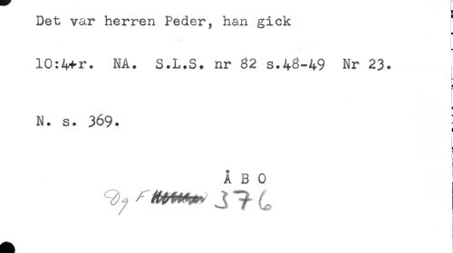 //// Det var herren Peder, han gick //// L //// 10:4+r. NA. S.L.S. nr 82 s.48-49 Nr 23. //// i //// < //// i //// < //// H //// N. s. 369. //// ! //// ! //// ÅBO //// i ////