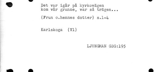 //// ^^ Det var igår pa kyrkovägen //// kom vår granne, var så trägen... //// (Frun o.hennes dotter) s.1-4 //// Karlskoga (VI) //// LJUNGMAN GBG:195 ////