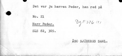 //// Det var ju herren Peder, han red på //// ^ No. 21 //// Herr Peder. ^37^? //// /SLS 82, 369. //// ^-< ^ .<- --- - * ^ //// ÅBO SJÖBERGS SAML. ////