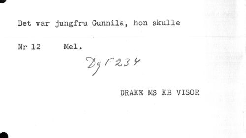 //// Det var jungfru Gunnila, hon skulle //// * //// Nr 12 Mel. //// DRAKE MS KB VISOR //// \ * ////