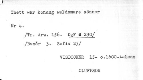 //// Thett war konung waldemars sönner //// Nr 4- //// /Tr. Årw. 156. DgF & 290 //// //Baner 3. Sofia 23 //// /* r ' //// VISBÖCKER 15- o.1600-talens //// 0LUFFS0N ////