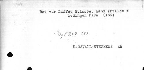 //// Det var Laffue Stissön, hand skullde i //// ledingen fare (189) //// <. - . //// * * <% ^ //// ' ' ' \ 4* //// M ' - * //// H-CAVALL-STEPHENS KB ////