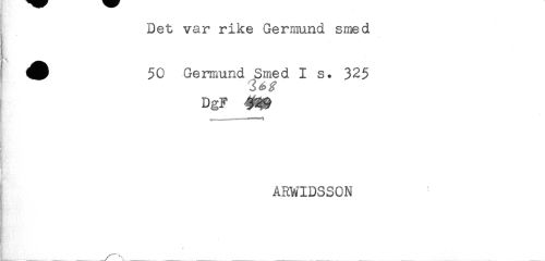 //// Det var rike Germund smed //// 50 Germund Smed Is. 325 //// DgF 329 //// I . - i //// ARWIDSSON //// ._... ____^____ ___ / ^ ___ _ _ _ _ _ _ ////