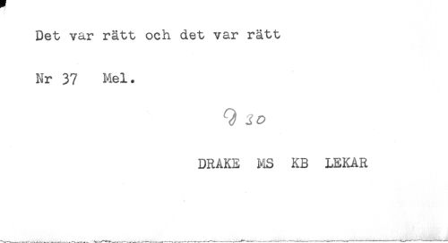 //// Det var rätt och det var rätt //// Nr 37 Mel. //// DRAKE MS KB LEKAR ////
