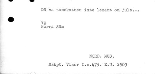 //// Dä va tamekatten inte lesarnt om jula... //// . //// * Vg //// Norra Sam //// NORD. MUS. //// Mskpt. Visor I.s.475. E.U. 2503 //// L...._ ////