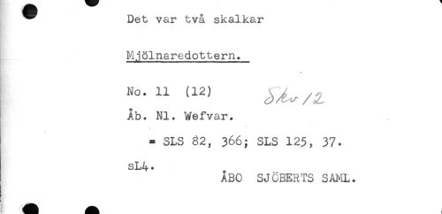 //// ^ Det var två skalkar //// Mjölnaredottern. //// Åb. NI. Wefvar. //// . * * * //// ! //// t //// = SLS 32, 366; SLS 125, 37. //// sL4* //// ÅBO SJGBERTS SAl^lL. ////