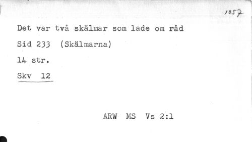 //// Det var två skälmar som lade om råd //// Sid 233 (Skälmarna) //// i //// ! //// 14 str. //// i //// Skv 12 //// i //// ARW MS Vs 2:1 ////