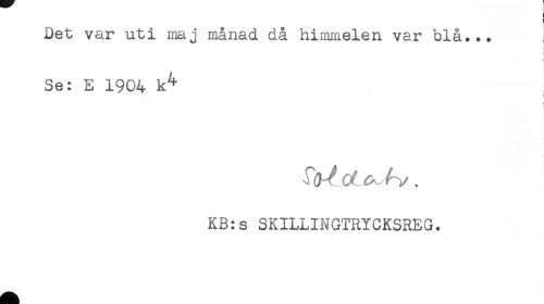 //// Det var uti maj månad då himmelen var blå... t //// ) //// < //// Se: E 1904 k^* //// ) //// i //// KB:s SKILLINGTRYCKSREG. ////