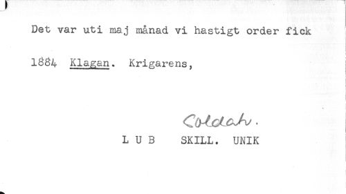 //// Det var uti maj månad vi hastigt order fick //// 1884 Klagan. Krigarens, ! //// ! //// } //// i //// ) //// ) //// : //// ! //// L U B SKILL. UNIK ////