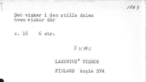 //// Det viskar i den stilla dalen //// hvem viskar där //// ( //// i //// i //// s. 16 6 str. //// LASENIUS" VISBOK //// FINLAND kopia SVA //// : //// - ////