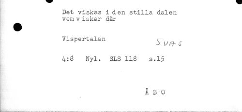 //// Det viskas iden stilla dalen //// vem v iskar där* //// Vispertalan , //// 4:8 Nyl. SLS 118 s.15 //// ÅBO //// * //// ^^ ... . ... ... /.. , ////