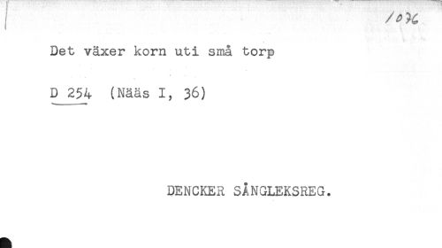 //// Det växer korn uti små torp //// * . , //// D 254 (Nääs I, 36) //// DENCKER SÅNGLEKSREG. ////