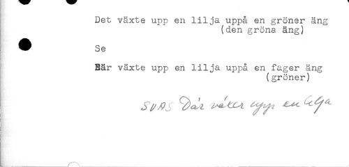 //// Det växte upp en lilja uppå en gröner äng //// (den gröna äng) //// Bär växte upp en lilja uppå en fager äng //// (gröner) ////