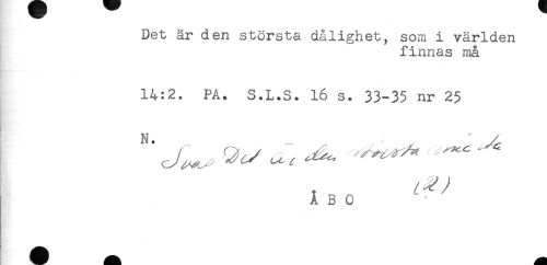//// Det är den största dålighet, som i världen //// finnas må //// 14:2. PA. S.L.S. 16 s. 33-35 nr 25 //// A B 0 ////
