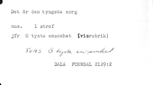 //// Det är den tyngsta sorg //// mus. 1 strof //// jfr 0 tysta ensamhet ^visrubrik) //// DÅLA FORNSAL 2129:2 ////