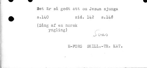 //// Bet är så godt att om Jesum sjunga //// ^ s.140 sid. 142 s.143 //// (Sång af en norsk //// yngling) //// ! H-FORS SKILL.-TR. KAT. ////
