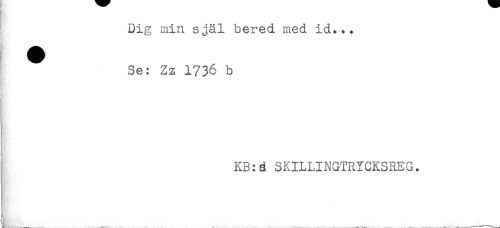 //// Dig min själ bered med id..+ //// KS'* //// ^ Se: Zz 1736 b //// KB:ä SKILLINGTRYCKSREG. ////