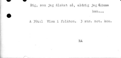 //// Dig, som jag älskat så, aldrig jagäömma //// kan... //// A 394:1 Visa i folkton. 3 str. not. kom. //// RA //// * //// + ////