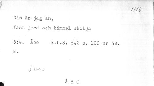 //// fast jord och himmel skilja //// 3:4. Åbo S.L.S. 542 s. 120 nr 52. //// N. //// [ //// t //// j Z^ J //// t //// ! //// ^ ÅBO ////