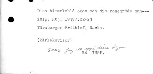 //// ^ insp. Rtj. 19397:22-23 //// Tärnberger P^rithiof, Nacka. //// (kärleksvisor) //// * ////