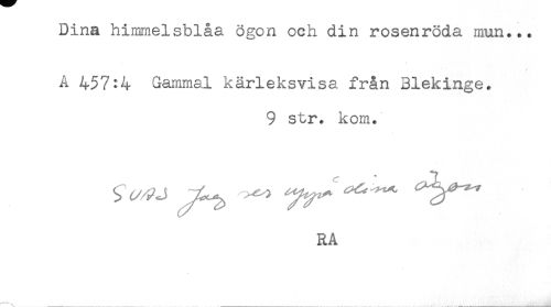 //// A 457^4 Gammal kärleksvisa från Blekinge. //// 9 str. kom. //// RA ////