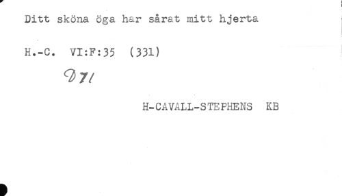 //// Ditt sköna öga har sårat mitt hjerta //// * //// H.-C. VI:F:35 (331) //// 97 //// /H-CAVALL-STEPHENS KB //// t ////