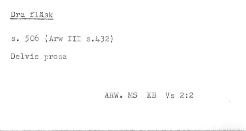 //// Dra fläsk //// s. 506 (Arw III s.432) //// Delvis prosa //// ARW. MS KB Vs 2:2 //// * ////
