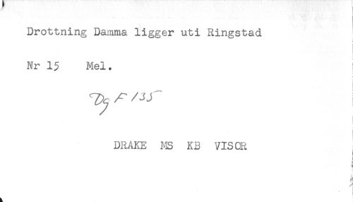 //// Drottning Damma ligger uti Ringstad //// < //// ! //// ( //// Nr 13 Mel. //// ! //// ^ /JJ //// DRAKE MS KB VISOR //// ! //// i //// ! //// i //// f! ////