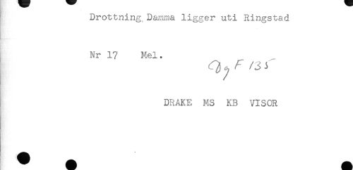 //// ' Drottning Damma ligger uti Ringstad //// Nr 17 Mel. //// DRAKE MS KB VISOR ////