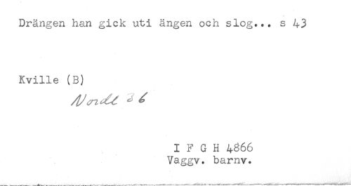 //// Drängen han gick uti ängen och slog... s 43 //// Kville (B) //// I F G H 4866 //// Vaggv. barnv. ////