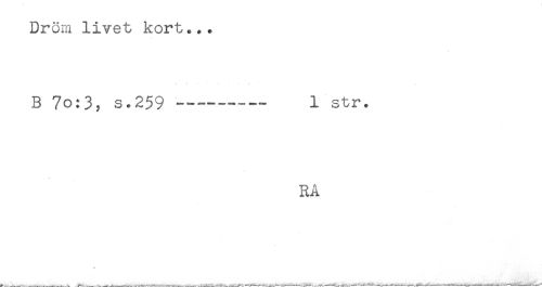 //// Dröm livet kort... //// B 7o:3, S.259 --- 1 str. //// RÅ ////