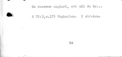 //// ! Du ensamme ungkarl, ett mål du är... //// B 70:3,s.176 Ungkarlen. 5 str.kom. //// i //// RA //// ..... ... __-. _ / - . .. ^ . -___ ^. ^ - .... ____ ////