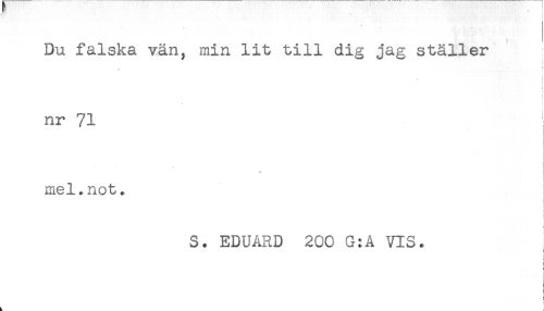 //// . , , 'M',:''". , - . t //// Du falska vän, min lit till dig jag ställer //// - : //// f //// t //// nr 71 //// mel,not. //// [ //// ) //// S. EDUARD 200 G:A VIS. //// ! //// c ////