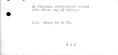 //// Du Finlands snöbetåckta strand //// står våren ung på nytt... //// 4:5* Brage 12 nr 63. ////