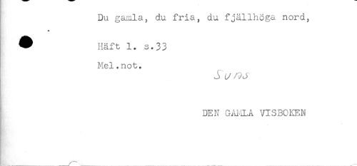 //// Du gamla, du fria, du fjällhöga nord, //// ^ Häft 1. s.33 //// Mel.not. //// J ^ ^ J //// DEN GAI-iLÅ VISBOKEN ////
