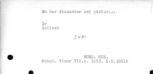 //// Du har diamanter och pärlor... //// Dr //// i Sollerö //// ^ NORD. MUS. //// Mskpt. Visor VII.s. 1C53. E.U.30615 ////