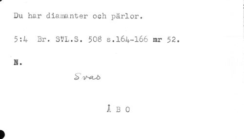 //// ! //// Du har diamanter och pärlor. //// [ //// . //// 5:4 Br. STL.S. 508 s.164-166 mr 52. //// N. ////