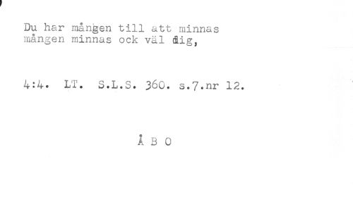 //// Du har mången till att minnas //// mången minnas ock väl åig, //// 4:4. LT. S.L.S. 360. s.7.rir 12. //// ÅBO ////