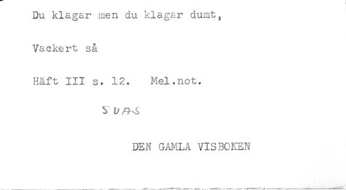 //// Du klagar men du klagar dumt, //// Vackert så //// Häft III s. 12. Mel.not. //// ^ f/ - A //// DEN GAMLA VISBOKEN ////