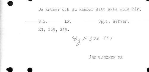 //// Du krusar och du kambar ditt äkta gula hår, //// * //// 3:2. LF. Uppt. Wefvar. //// R3, 165, 255. //// ÅBO R ANCKEN MS ////