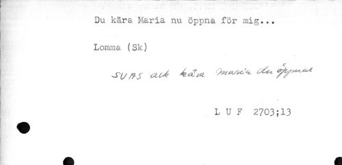 //// ' - ' * ..... ' -'<- //// Spft), < //// Du kära Maria nu öppna för mig... //// -- .* . ..... //// Lomma (Sk) //// . * //// L U F 2703;13 ////
