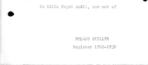 //// Tu lilla Fogel snäll, som wet af //// Eft-j- //// MELANG SKILLTR //// Register 1700-1330 ////