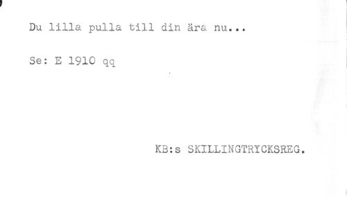 //// Du lilla pulla till din ära nu... I //// Se: E 1910 qa j //// ) //// KB:s SKILLINGTRYCKSREG. ////