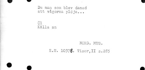 //// Du man som blev danad //// att vågorna plöja.„. //// Öl //// Källa sn //// NORD. MUS. //// 4 //// * //// E.U. 1037$. Visor,II s.285 ////