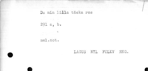 //// Du min liåla täcka ros //// . . . //// 291 a, b. //// h ".- ^ .. 4 //// mel.not + //// . //// ^ LAGU3 NYL FOLKV REG. ////